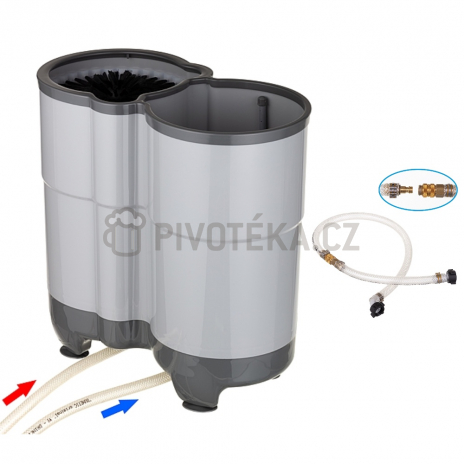 Ruční myčka na sklo pro bary a restaurace. Přívod pro teplou i studenou vodu.DUNET Compact Šedá Hot & Cold je kompaktní neelektrický ruční přístroj, jenž Vám díky své nulové energetické náročnosti a nízké spotřebě vody zajistí snížení nákladů provozu.